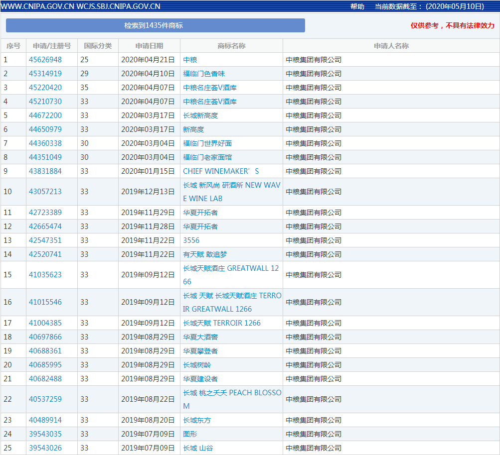 中糧集團有限公司是世界500強企業(yè),是中國最大的糧油食品企業(yè),中央企業(yè),同時上榜“中國品牌500強”、“5.10中國品牌?十大社會責(zé)任品牌”,旗下可檢索到的商標(biāo)計有1435件。