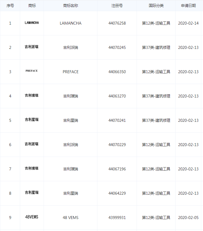 浙江吉利控股集團始建于1986年,旗下?lián)碛屑?、領(lǐng)克汽車、沃爾沃汽車、Polestar、寶騰汽車、路特斯汽車、倫敦電動汽車、遠(yuǎn)程新能源商用車、太力飛行汽車、曹操專車、荷馬、盛寶銀行、銘泰等眾多國際知名品牌。注冊商標(biāo)計有6411件。